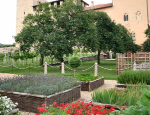 Ricordo che in quel periodo eravamo stati alla Rocca di Angera –che domina l’estremità meridionale del Lago Maggiore, nei pressi di Arona – e la vista del suo giardino medievale (foto) con una parte di acqua ci aveva colpito e ispirato.